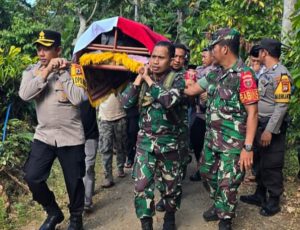Kapolres dan Babinsa Koramil/ Kodim 1411/Blk Turut Mengusung Jenazah Bripka Asirman dalam Upacara Pemakaman Dinas di Bulukumba