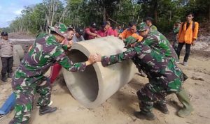 Sinergi TNI, Polri, dan Warga Desa Suka Maju dalam Pemindahan Gorong-Gorong