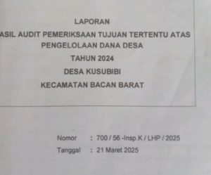 Hasil Audit Inspektorat Menemukan Kerugian 993 Juta Dari Dana Desa 1,3 M T Desa Kusubibi.