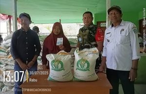 Danpos Desa Panambuang Bersama Pemerintah Desa Memberikan Bantuan Beras Kepada Warga yang Berhak Menerima