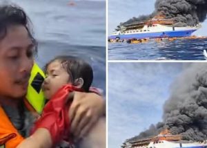 KM Barcelona 5 Terbakar di Perairan Talise, Penumpang Lompat ke Laut Selamatkan Diri dan Aksi Heroik Pria Gendong Balita Viral