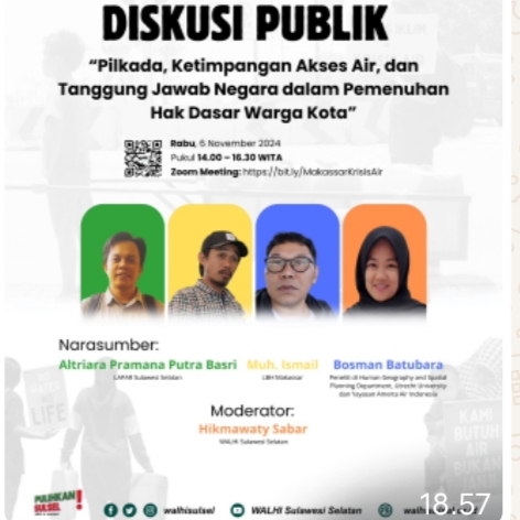 Ini bukan sekadar keluhan – ini adalah ajakan untuk bertindak. Koalisi Gerakan Makassar Menuntut Air Bersih (GEMAH) mengundang Anda untuk turut serta dalam diskusi publik yang penuh energi, aksi, dan harapan. Bersama, kita bisa mengubah krisis ini menjadi momentum bagi perubahan nyata yang dirasakan semua warga.