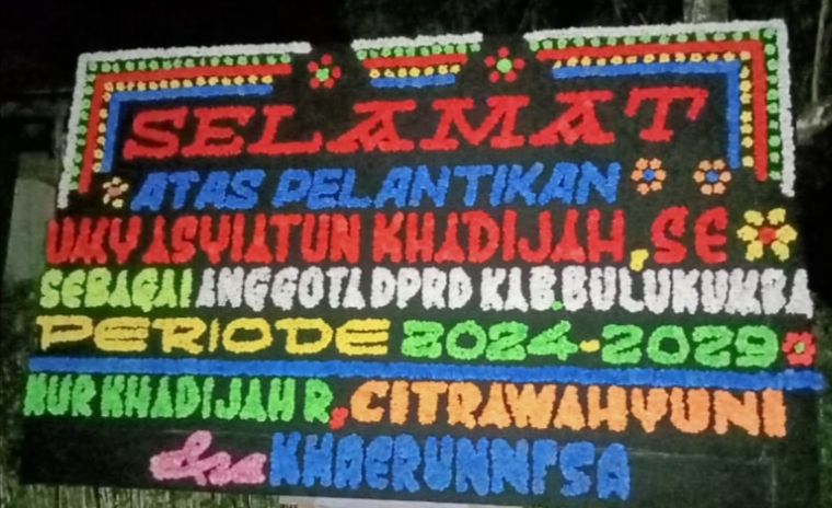 Ucapan selamat yang tertulis di karangan bunga sebagian besar mengapresiasi dedikasi Umy Asyiatun yang selama ini dikenal aktif dalam berbagai kegiatan sosial dan politik di wilayahnya. Salah satu ucapan berbunyi, “Selamat atas pelantikan Umy Asyiatun Khadija, S.E. sebagai anggota DPRD Bulukumba 2024-2029. Semoga amanah dalam menjalankan tugasnya.”