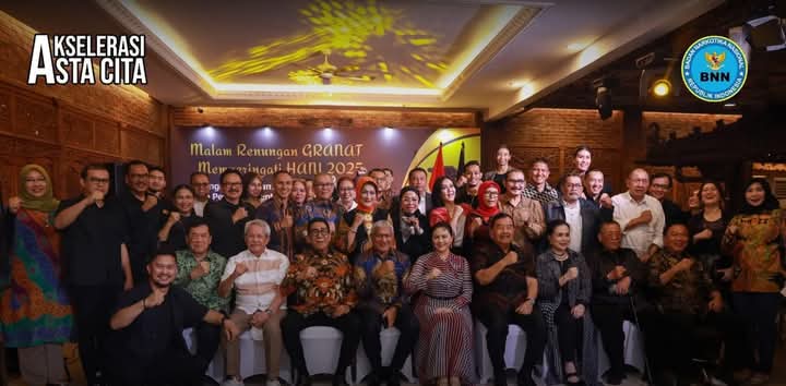 JAKARTA Dalam suasana yang penuh keheningan dan semangat perjuangan, Kepala Badan Narkotika Nasional Republik Indonesia (BNN RI), Marthinus Hukom, S.I.K., M.Si., menghadiri Malam Renungan yang diselenggarakan oleh Gerakan Nasional Anti Narkotika (GRANAT) dalam rangka memperingati Hari Anti Narkotika Internasional (HANI) 2025, bertempat di Pendopo Henry Yosodiningrat, Jakarta Selatan, Sabtu malam (28/6/2025).