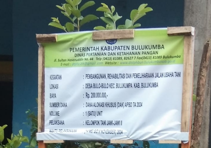 Beritabaru com.Bulukumba, – Proyek perkerasan jalan yang dibiayai oleh Dana Alokasi Khusus (DAK) sebesar Rp 200 juta di Desa Bulo-Bulo, Kecamatan Bulukumpa, Kabupaten Bulukumba, menuai sorotan. Proyek ini, yang dikelola oleh Kelompok Tani Jawi-Jawi II, diduga tidak layak dan tidak sesuai dengan standar yang seharusnya.