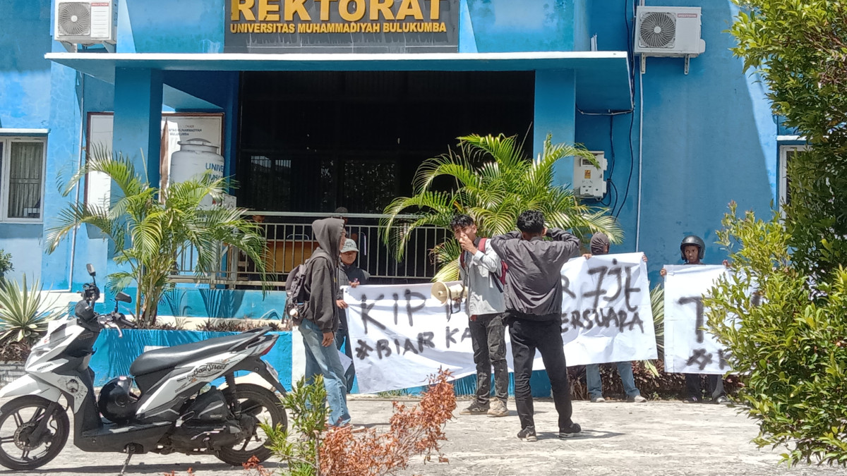 Beritabaru.com.Bulukumba, – Belasan mahasiswa yang tergabung dalam Aliansi Mahasiswa Bergerak Universitas Muhammadiyah Bulukumba (UMB) menggelar aksi unjuk rasa di depan Gedung Rektorat UMB pada Rabu, 16 Oktober 2024. Mereka menuntut klarifikasi atas dugaan praktik pungutan liar (pungli) dalam program beasiswa aspirasi dari Fraksi Golkar di DPR-RI.