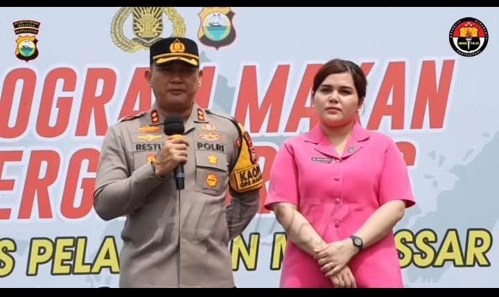 Beritabaru.com.Makassar — Dalam langkah inspiratif untuk mendukung program Asta Cita Presiden RI, Polres Pelabuhan Makassar meluncurkan inovasi unggulan bertajuk “Makan Bergizi Gratis” (MBG). Program ini, yang dipimpin langsung oleh Kapolres Pelabuhan Makassar, AKBP Restu Wijayanto, dan Ketua Bhayangkari Cabang Pelabuhan, Ny. Ruthi Restu, menjadi terobosan nyata untuk meningkatkan kualitas hidup anak-anak melalui asupan makanan sehat.