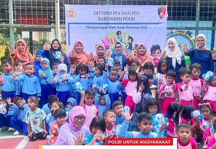 JAKARTA SELATAN – Tawa riang, sorak sorai, dan wajah polos penuh semangat mewarnai Ruang Publik Terpadu Ramah Anak (RPTRA) Pesona di Manggarai, Jakarta Selatan, Rabu (23/7). Dalam rangka memperingati Hari Anak Nasional 2025, Direktorat Tindak Pidana PPA-PPO Bareskrim Polri menggelar kegiatan interaktif penuh warna, bukan sekadar hiburan, tapi juga pelajaran hidup yang melekat di hati anak-anak.